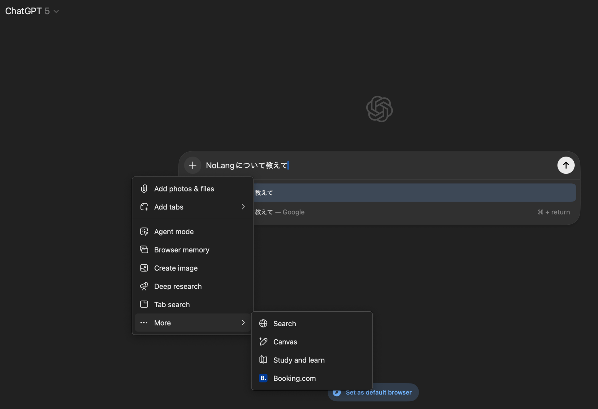 なお「Command + Return」によって、ChatGPTに聞く代わりにGoogle検索を行える。