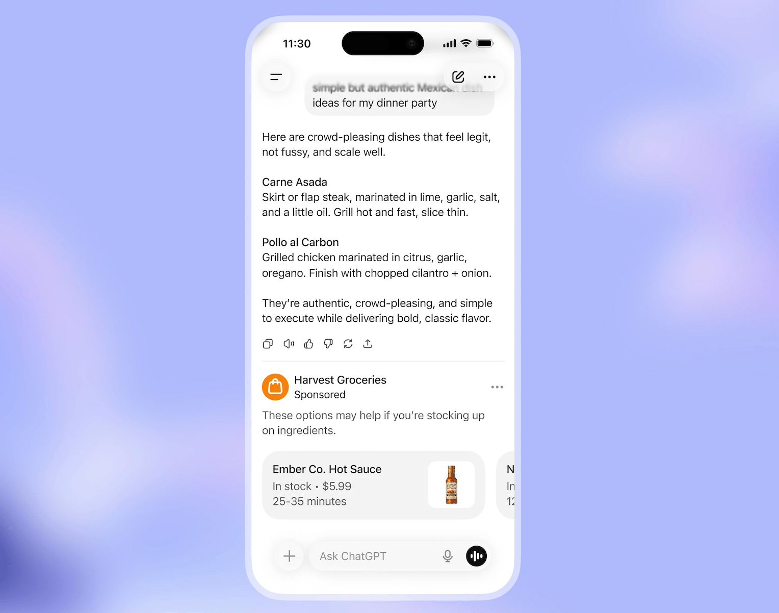 OpenAIがテストを予定している最初の広告フォーマットのイメージ例