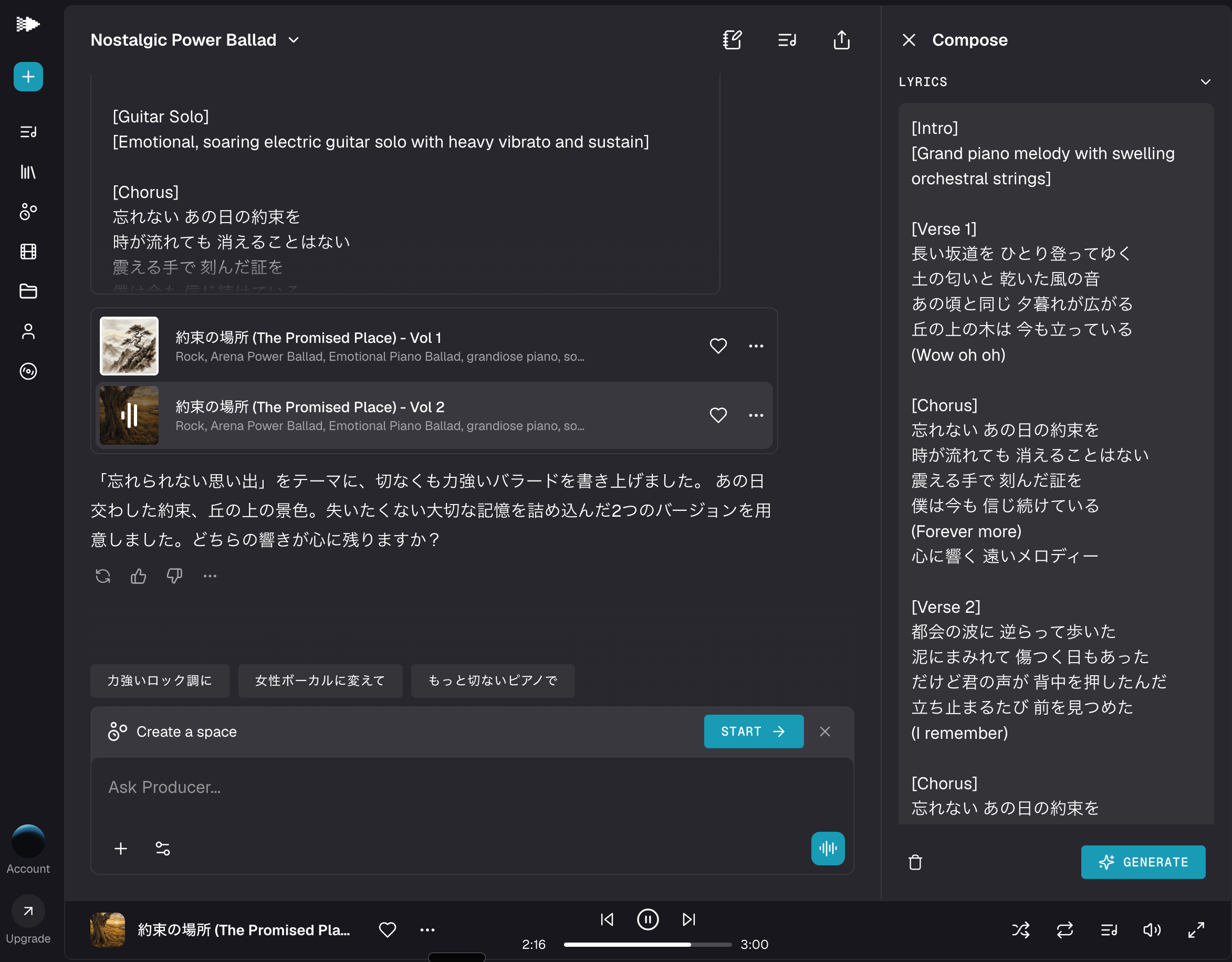 ChatGPTのようなチャットインターフェースで、AIと音楽作りを進めていける点が嬉しい
